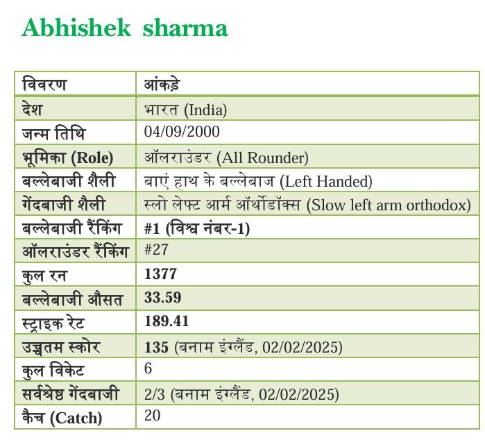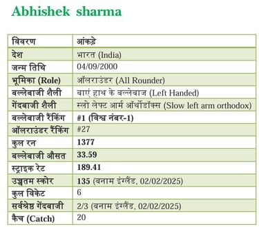 विस्फोटक बल्लेबाजी: अभिषेक का 189.41 का स्ट्राइक रेट किसी भी गेंदबाज के पसीने छुड़ाने के लिए काफी है। इंग्लैंड के खिलाफ उनकी 135 रनों की पारी उनके टैलेंट का सबसे बड़ा सबूत है।