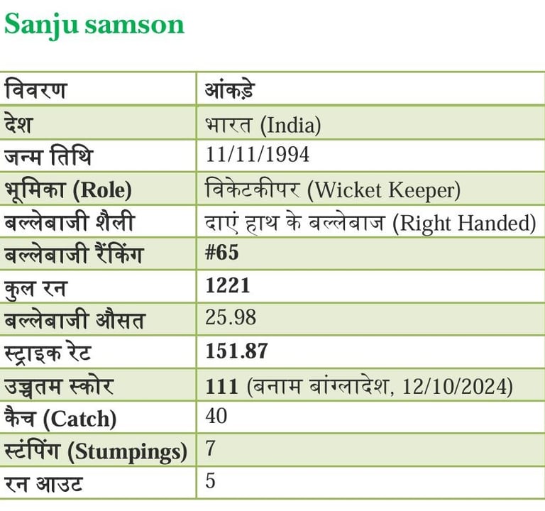 करियर प्रोफाइल: संजू ने अब तक 1221 रन बनाए हैं, लेकिन उनका असली हथियार उनका 151.87 का स्ट्राइक रेट है।