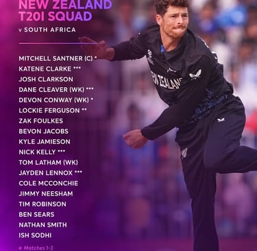 न्यूज़ीलैंड बनाम दक्षिण अफ्रीका 2026: कीवी टीम का ऐलान, सेंटनर और लाथम को मिली कप्तानी